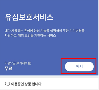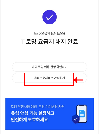 T 로밍 요금제가 해지되면 아래 사진처럼 뜹니다. 바로 "유심보호서비스 가입하기"를 클릭합니다.
